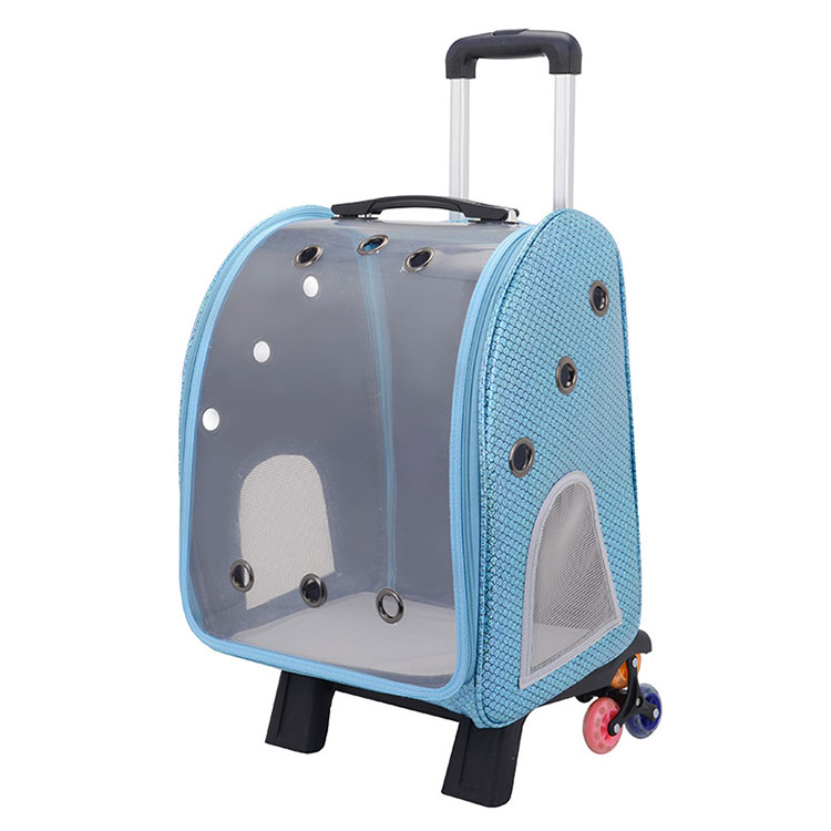 Em resposta à crescente tendência de passeios autônomos, surgiram transportadoras de animais de estimação montadas em carros. Eles apresentam bases anti-deslizamento e dispositivos de fixação do cinto de segurança, permitindo que eles sejam instalados com segurança em assentos de carro e impedindo que animais de estimação correram no carro durante a frenagem repentina. Algumas transportadoras montadas em carros também têm funções de expansão, que podem ser desdobradas para criar um espaço de atividade maior, garantindo que os animais de estimação possam descansar confortavelmente durante longas viagens. Além disso, essas transportadoras são fáceis de desmontar e limpar, resolvendo efetivamente o problema dos pêlos e manchas de animais que permanecem dentro. Eles oferecem uma solução de viagem para animais de estimação sem preocupações para os proprietários de carros. Também projetamos uma conveniente caixa de transporte de carrinho de gato de estimação para viagens. Este design possui rodas para facilitar o transporte de animais de estimação. Possui zíperes em três lados, facilitando a colocação e a entrada de animais de estimação dentro e fora da caixa de transporte.